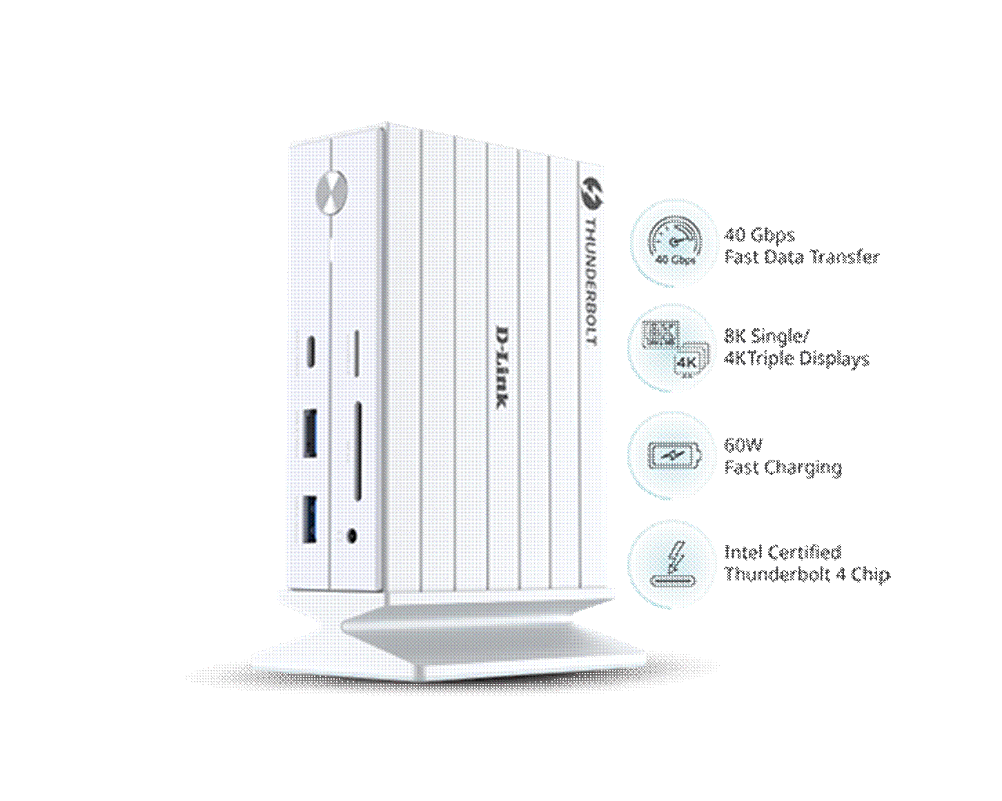 The DUF-E01 requires a host device with a Thunderbolt 4 port. While the USB-C connector is physically compatible with many devices, full functionality including multi-display output, 40Gbps transfer speeds and Power Delivery requires Thunderbolt 4 certification. Compatible with macOS and Windows operating systems that support Thunderbolt 4.