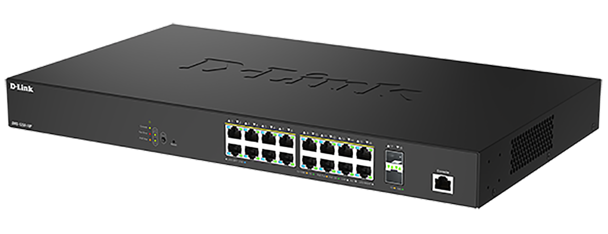 • DMS-1250-18P 18-Port Multi-Gigabit Smart Managed PoE++ Switch with 16 2.5G 90W PoE++ ports and 2 10G SFP+ ports