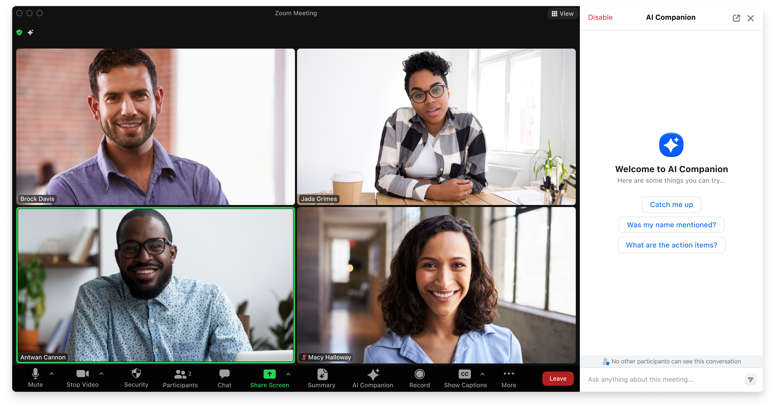 Zoom’s goal is to invest in AI-driven innovation that enhances user experience and productivity while prioritizing trust, safety, and privacy. In August, Zoom shared that it does not use any customer audio, video, chat, screen-sharing, attachments, or other communications-like customer content (such as poll results, whiteboards, or reactions) to train Zoom’s or third-party artificial intelligence models. Additionally, AI Companion is turned off by default — account owners and administrators control whether to enable these AI features for their accounts. Zoom provides admins and users control and visibility when AI features are being used or activated. By putting its customers’ privacy needs first, Zoom is taking a leadership position, enabling its customers to use AI Companion and its capabilities with confidence.